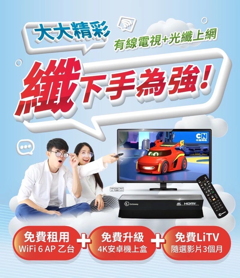 🔸有線電視+光纖上網同裝享優惠!!洽詢隱藏優惠價、專人到府服務安裝